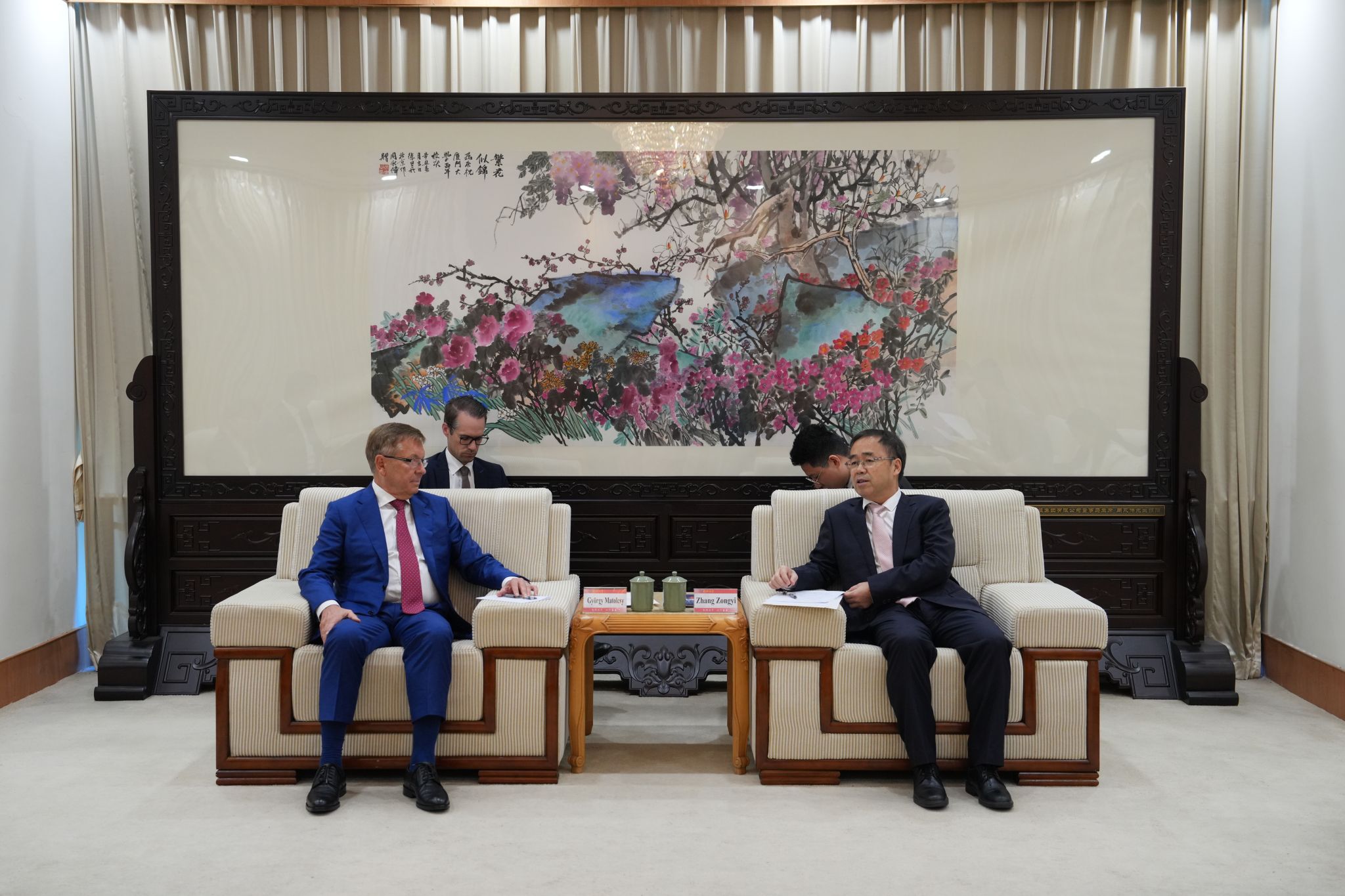 5月29日,匈牙利央行行长毛托尔奇·捷尔吉(György Matolcsy)一行来访我校,校长张宗益会见来宾。